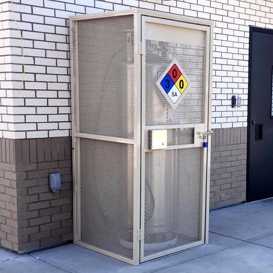 Phoenix Welding Supply provides high-quality gas cylinder enclosures engineered for safety, compliance, and long-term reliability. Constructed from durable mild steel and finished with a protective tan coating, each enclosure is city approved and delivered fully assembled for quick installation and dependable performance.