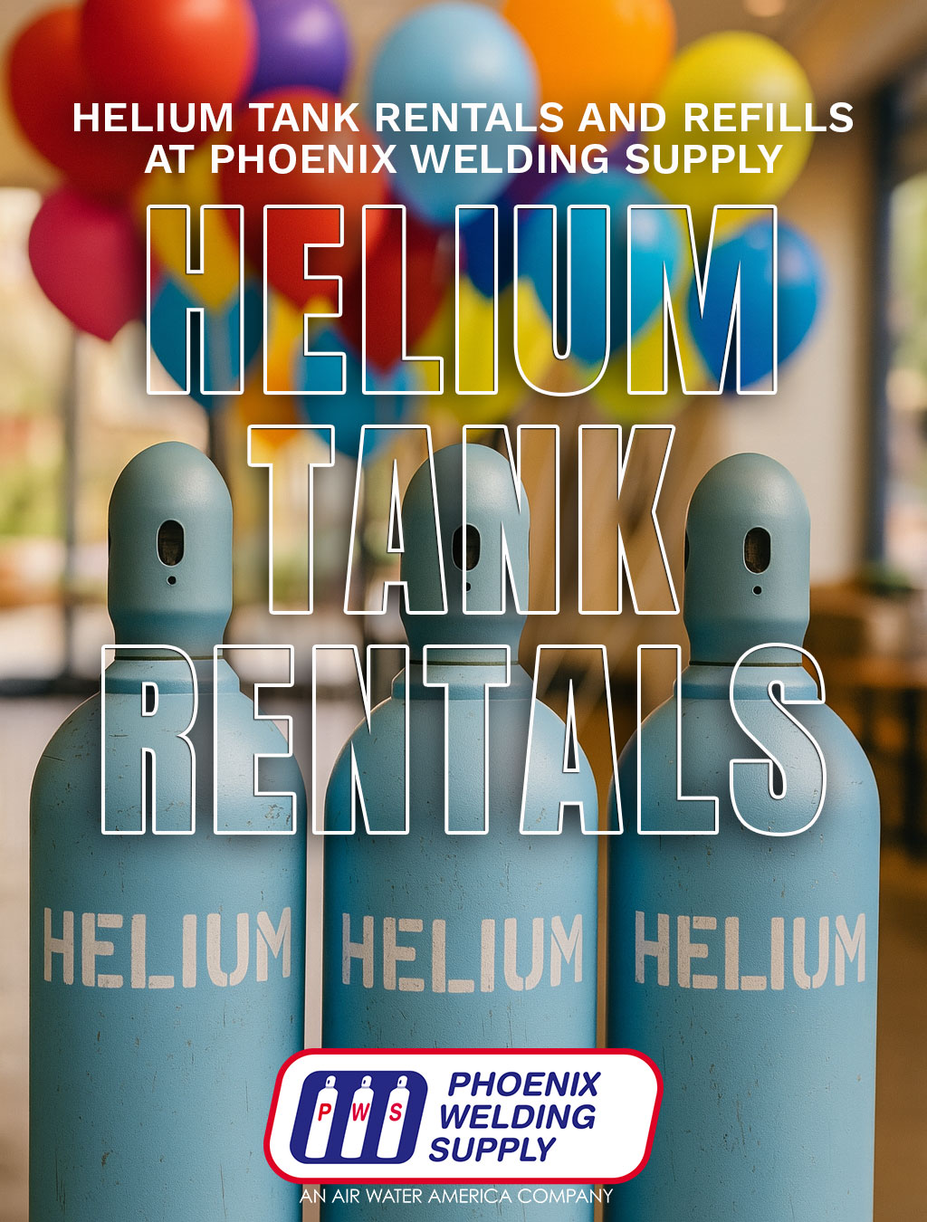 Whether you are planning an event, managing a retail program, or supporting a commercial application, Phoenix Welding Supply provides reliable helium tank rentals and refills across Arizona. Our team supplies clean, safe helium with flexible rental options for short-term or ongoing needs.